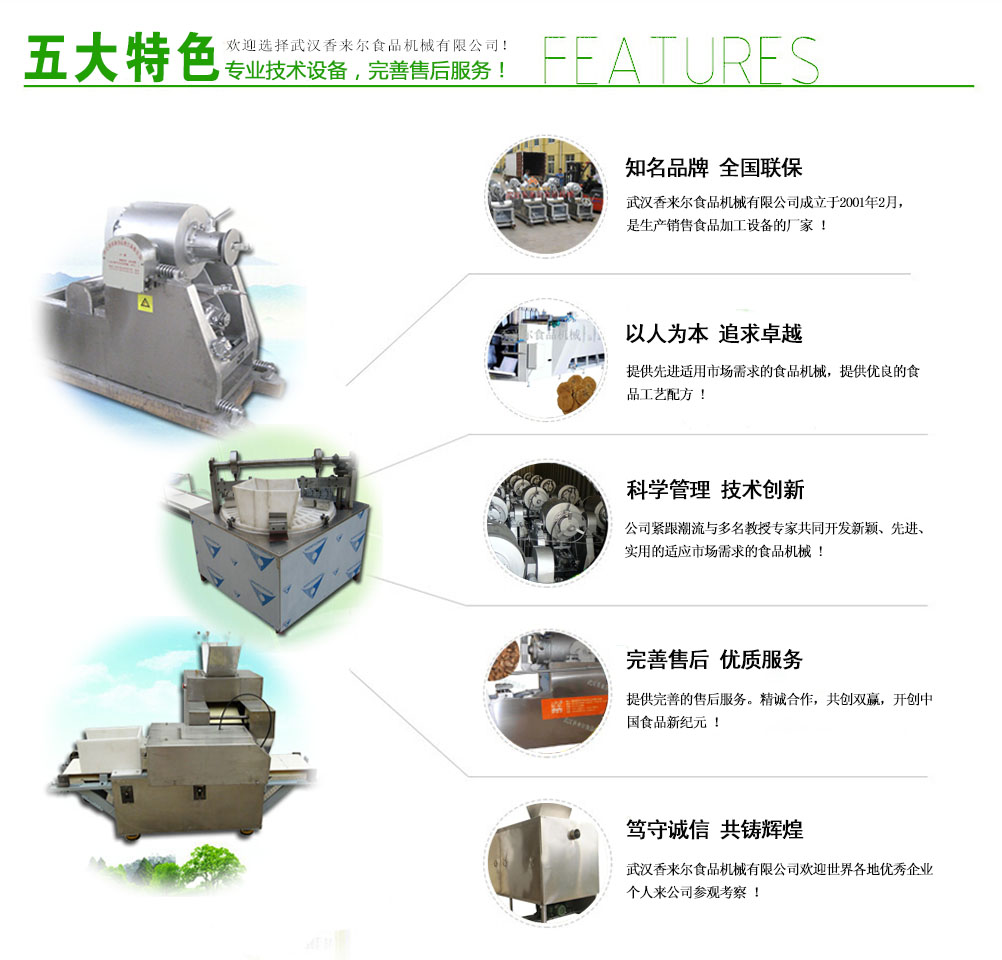 武漢香來爾食品機(jī)械有限公司成立于2001年2月,是生產(chǎn)銷售休閑食品加工設(shè)備的廠家。公司緊跟市場(chǎng)潮流與華工、華農(nóng)多名共同開發(fā)新穎、實(shí)用的適應(yīng)市場(chǎng)需求的食品機(jī)械,自有車、刨、鉆、銑、剪板、折彎等先l進(jìn)機(jī)床100多臺(tái) 套。7年誠信通會(huì)員,產(chǎn)品出口拉美、非洲、東南亞、歐洲等很多國家和地區(qū),國內(nèi)很多食品企業(yè)都是我們的合作伙伴。目前公司專門設(shè)立一個(gè)的售后 服務(wù)班子,在公司逐步發(fā)展強(qiáng)大的過程中,一直堅(jiān)持售后服務(wù)的同步發(fā)展,精良的食品設(shè)...